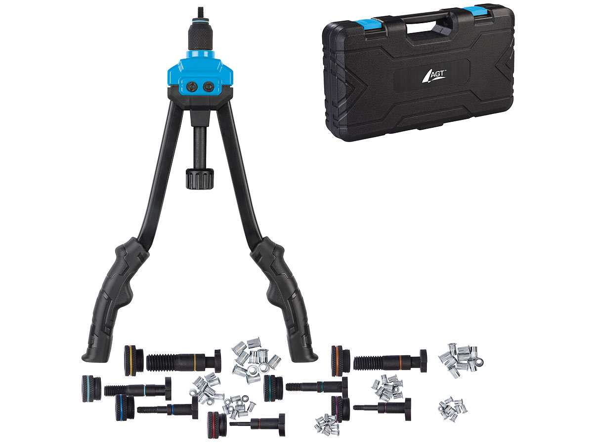 AGT Nietmutternzange mit 330 Nietmuttern, Dornen M3 – M12, Koffer, 40 cm