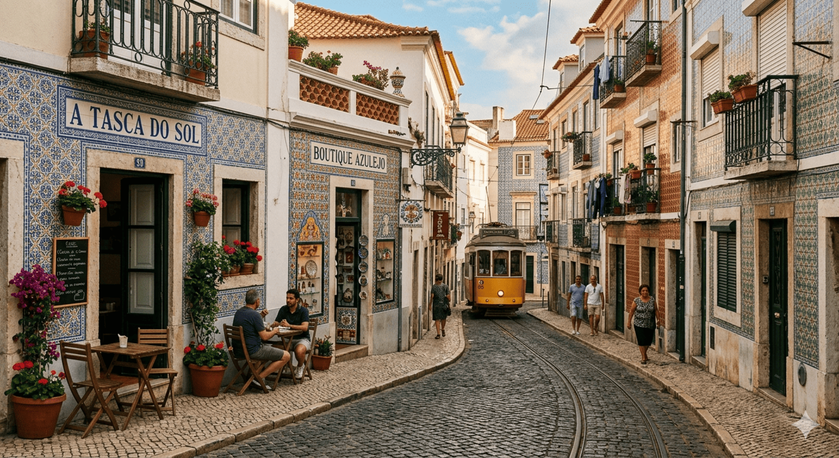 Hier hängt Wäsche zwischen den Häusern, ältere Bewohner sitzen vor ihren Türen, während aus offenen Fenstern Fado-Klänge dringen. Der Fado, Lissabons melancholischer Gesang, ist in der Alfama allgegenwärtig. In den kleinen Tavernen wird er noch authentisch gesungen, begleitet von portugiesischer Gitarre.