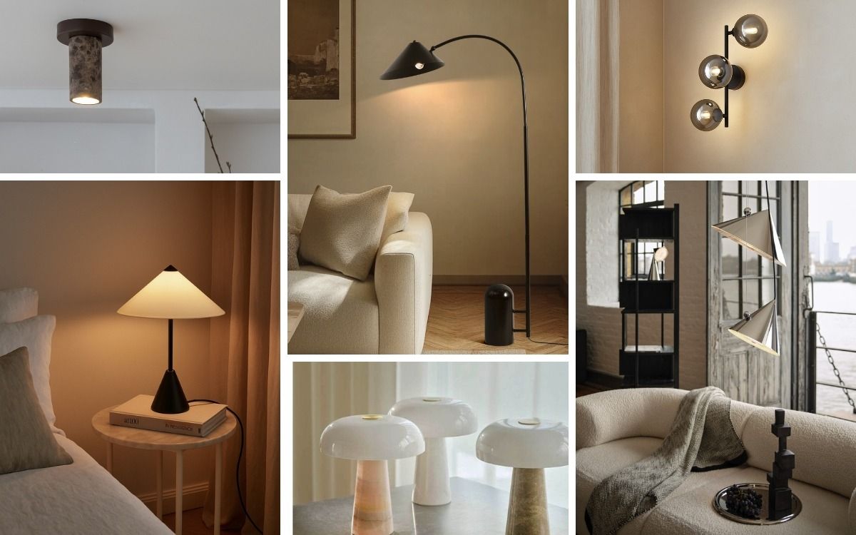 Marmor, Travertin und Onyx verleihen Leuchten eine architektonische Präsenz und bringen natürliche Eleganz in das Interieur. Von poliert bis naturbelassen zeigen die Materialien eine Vielfalt an Texturen und Farbnuancen, die von ruhigen Cremetönen bis hin zu markanten Maserungen reichen. Besonders bunter Marmor entfaltet im Zusammenspiel mit Holz, Stoff oder Metall eine lebendige, ikonische Wirkung. Travertin sorgt mit seiner warmen, offenporigen Struktur für geerdete Modernität, während Onyx mit seiner lichtdurchlässigen Aderung eine besondere Tiefe erzeugt. Zusammen schaffen sie Lichtobjekte, die sowohl zeitlos als auch skulptural anmuten.