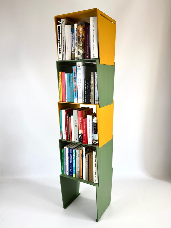 Das GRIPS Modulregal vom jungen deutschen Label monomalist basiert auf lediglich einem minimalistischen Element. Nach dem Vorbild einer Federklammer lassen sich durch die Elastizität des verwendeten 5mm starken Aluminiums lassen sich die Module formschlüssig ohne Verbindungsmittel oder Werkzeug sicher miteinander verbinden.