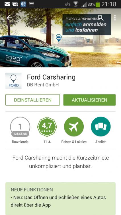 kostenlose Ford Carsharing App um entsprechende Funktionen erweitert.