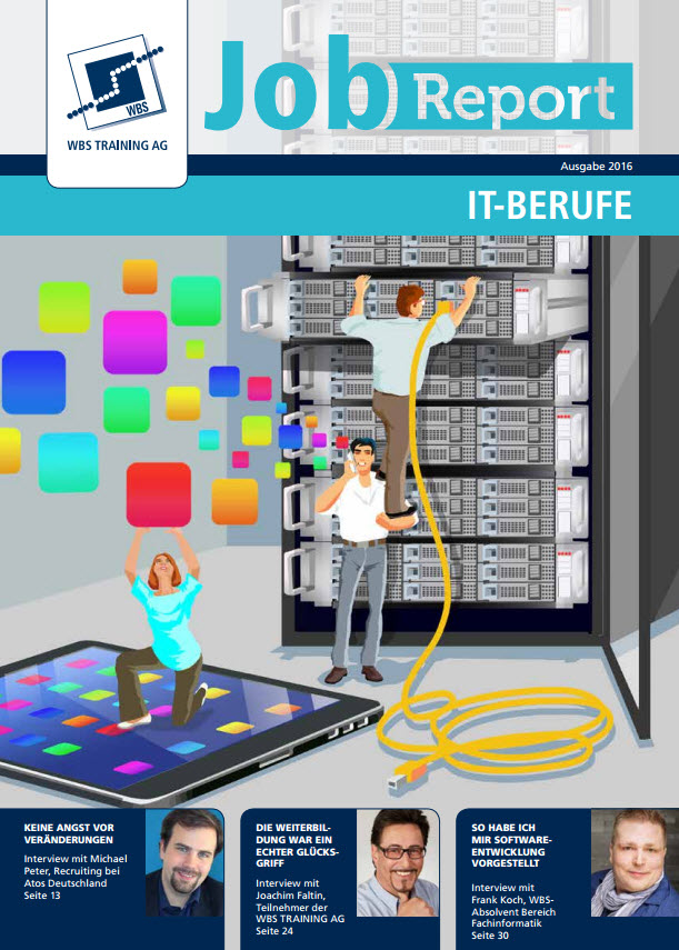 Der WBS-JobReport „IT-Berufe“ liegt ab sofort als Printausgabe an den WBS-Standorten aus und kann unter www.wbstraining.de/jobreport heruntergeladen werden. Hier findet sich auch das gesamte Bildmaterial des JobReports zum Download in druckfähiger Auflösung.
