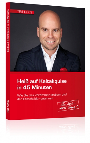 „Am anderen Ende des Telefons ist immer ein Mensch, und diesen können wir mit den richtigen Strategien wertschätzend und gewinnend ansprechen“, erläutert Tim Taxis. „Dann kann Kaltakquise dem Anrufer wie dem Angerufenen sogar Spaß machen. Und vor allem steigen die Erfolgsquoten signifikant!“. Sein Ansatz: überzeugen ohne zu argumentieren. Keine manipulativen Techniken, sondern zum richtigen Zeitpunkt die richtigen Trigger-Worte verwenden und effektive Methoden einsetzen – und das mit Spaß und Freundlichkeit. „Heiß auf Kaltakquise in 45 Minuten. Wie Sie das Vorzimmer erobern und den Entscheider gewinnen“ zeigt in komprimierter Form mit vielen Praxisbeispielen, wie das geht. Authentisch, erfolgreich und jederzeit wiederholbar.