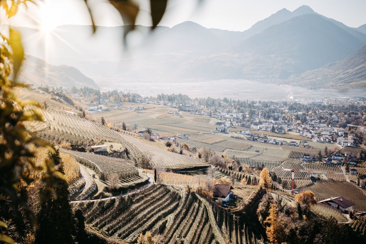 Wenn am Abend die letzten Sonnenstrahlen hinter den Südtiroler Bergen verschwinden, entsteht oberhalb von Meran ein Schauspiel aus Licht und Stille. Gegenüber zeichnen sich das Vigiljoch und die Mutspitze ab, dahinter die markanten Gipfel der Texelgruppe. Dazwischen öffnet sich der Blick in Richtung Vinschgau, während unten im Tal die Lichter der Kurstadt Meran zu funkeln beginnen. Genau hier, an den sonnigen Hängen von Schenna, liegt das Hotel Hohenwart.