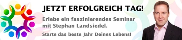 Die Mehrheit der Menschheit ist unzufrieden mit dem eigenen Leben oder könnte es sich zumindest besser vorstellen. Klagen, Depressionen und Lebenskrisen sind geläufige Ausdrücke im Alltag. Wörter wie „Burnout“ und die bekannte „Mid-Life-Crises“ haben in den letzten Jahren nicht nur an Popularität gewonnen, sondern sind sogar öfter zu hören als wir uns eigentlich wünschen. Genau aus diesem Grund hat Stephan Landsiedel den „JETZT ERFOLGREICH TAG!“ ins Leben gerufen und tourt schon seit vergangenem Jahr 2013 durch ganz Deutschland. Das Tagesseminar beschäftigt sich damit, wie man wieder zu mehr Erfolg gelangt und das eigene Potential entdeckt und bestmöglich daraus schöpft. Weitere Inhalte des „JETZT ERFOLGREICH TAGES!“ sind: Ziele, Motivation, Kommunikation und Veränderung von Glaubenssätzen.