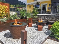 Grillschalen, Brunnen, Hocker, Lounges, Stahlwände, Hochbeete und Blumentröge: Alles in Cortenstahl, einer speziellen Stahlart, die nach einigen Wochen im Freien eine Patina entwickelt, die ihn vor dem Durchrosten schützt. Die zweite Generation von Rochus Krallingers Traditions-Kunstschmiede in St. Martin am Tennengebirge hat sich diesem vielseitigen Material verschrieben und eine eigene Linie mit dem Namen LaKra entwickelt. Auf der „Bauen+Wohnen“ (08.–18.02.18) kann man sich im Salzburger Messezentrum einen Überblick darüber verschaffen, was in modernen Gärten alles aus Cortenstahl machbar ist. Entwickelt hat sich die LaKra-Produktlinie rings um die LaKra-Grillschalen mit bis zu 1,20 Meter im Durchmesser, die in der heimischen Hotelszene mittlerweile stark vertreten sind und längst den Sprung in private Gärten geschafft haben. Die halbkugel-, schalen- oder kegelstumpfförmigen Gefäße verbinden den optischen Reiz einer Feuerstelle mit einem klassischen Griller, der mit einem Grillrost und einem emaillierten Eisentopf zusätzlich erweitert werden kann. Die Kosten für einen „LaKra“ liegen je nach Größe bei plus/minus 2.000 Euro. Hinter der Produktlinie stehen Ann-Katrin Langegger-Krallinger und Markus Langegger sowie Seniorchef Rochus Krallinger. Sie haben in die schlicht-schönen und geradlinigen Entwürfe ihre Liebe zum Garten und zum Grillen einfließen lassen. Laut ihren Aussagen geht der Trend zum Grillen immer stärker auch in Richtung kompletter „Outdoor-Küchen“ mit Arbeitsfläche, Spülbecken sowie überdachten Essbereichen. Die Details und Möglichkeiten, die der „Gartengestalter in Metall“ dafür anbietet, sind auf den Salzburger Messeständen zu erfahren – und im Schaugarten in St. Martin am Tennengebirge, am besten mit Voranmeldung. www.lakra.at