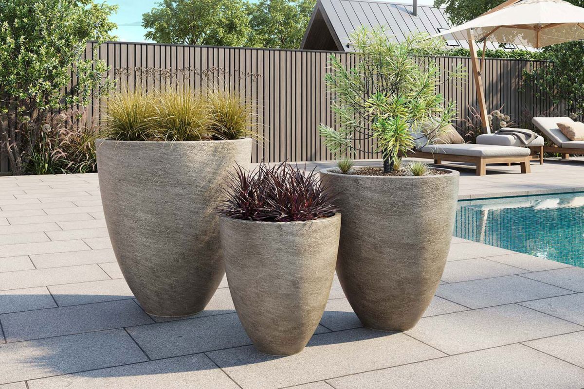 Klassische runde oder eckige Pflanzkübel verlieren zunehmend an Bedeutung. Gefragt sind ausdrucksstarke Formen mit Charakter: konische, bauchige oder gewölbte Silhouetten, Schalen, Pflanzvasen und skulpturale Gefäße. Designs mit Standring, Füßen oder Podesten, abgesetzte Höhen, geometrische Linienführungen oder Lattenoptiken sorgen für architektonische Wirkung und machen das Pflanzgefäß selbst zum Blickfang.