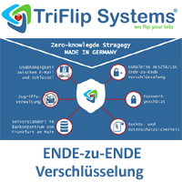 „Wir entwickeln nur noch Ende-zu-Ende verschlüsselte Cloud- und Email- Systeme bei denen wir das Passwort unserer Kunden nicht rekonstruieren können“ sagt Tobias Oesterwinter, Informatiker, Ingenieur und Geschäftsführer von dem Paderborner IT-Sicherheitsfirma Triflip Systems. „Damit kann keiner auf dritte Daten zugreifen, selbst wir nicht. Hiermit können wir die großen Vorteile von modernen Cloud-Systemen und E-Mail Systemen zu jedem Zeitpunkt erhalten.“