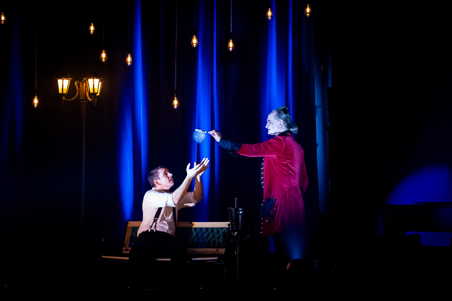 Ein Höhepunkt des Abends war die Seifenblasenshow „Wunderbare Seifenblasen“ zur Live-Musik von Natalia Balint und Evgeny Alexeev. Die Musik und die Blasen agierten kongenial miteinander: Töne wurden zu Bewegungen, Bewegungen zu Licht, Licht zu Emotion. In dichten, schimmernden Momenten entstanden Rauch-Seifenblasen, die wie kleine Planeten wirkten – geheimnisvoll, fragil, unwirklich nah. Dann wieder flammten brennende Seifenblasen auf: ein kurzer, warmer Blitz, der im nächsten Augenblick verschwand und genau dadurch Gänsehaut erzeugte.