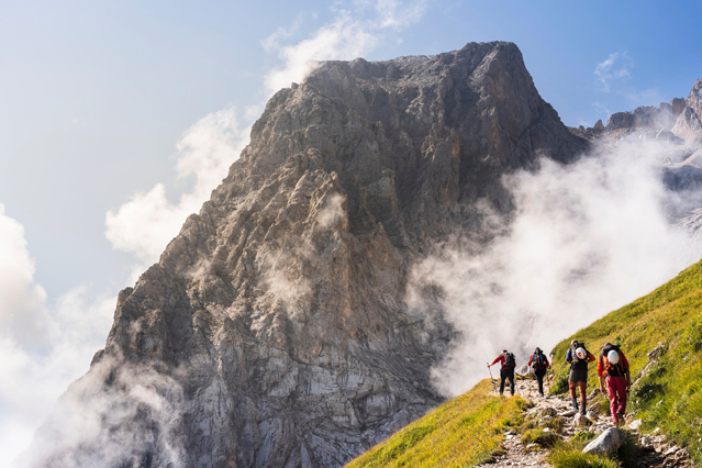 Nicht jede Tour in den Bergen ist gleich. Während Wandern meist auf befestigten und gut markierten Wegen stattfindet, führt das Bergsteigen oft über wegloses, steiles und absturzgefährdetes Gelände. Technische Anforderungen wie Kletterstellen, Gletscherquerungen oder der Einsatz von Steigeisen machen das Bergsteigen deutlich anspruchsvoller. „Für Bergsteiger reicht die Grundausrüstung des Wanderers nicht mehr aus“, so die Expertin. „Neben festen Schuhen kommen Seil, Steigeisen, Pickel und Sicherungstechniken zum Einsatz.“ Es braucht nicht nur eine gute körperliche Kondition, sondern auch Kenntnisse im Umgang mit alpiner Ausrüstung und Techniken. Erfahrung und eine realistische Selbsteinschätzung sind dabei unverzichtbar. Bergsteiger bewegen sich in einer Umgebung, in der zusätzliche Gefahren lauern. Steinschlag in felsigen Passagen, Lawinengefahr im Winter oder Frühjahr und Spalten auf Gletschern. Solche Risiken lassen sich nur mit Wissen, Vorbereitung und der richtigen Technik beherrschen. „Gerade für Einsteiger empfiehlt es sich, eine anspruchsvolle Bergtour nur in Begleitung erfahrener Bergführer zu unternehmen. Sie helfen bei der sicheren Routenwahl, geben wichtige Hinweise zum Verhalten im alpinen Gelände und können im Notfall schnell reagieren“, rät die ERGO Reiseexpertin.