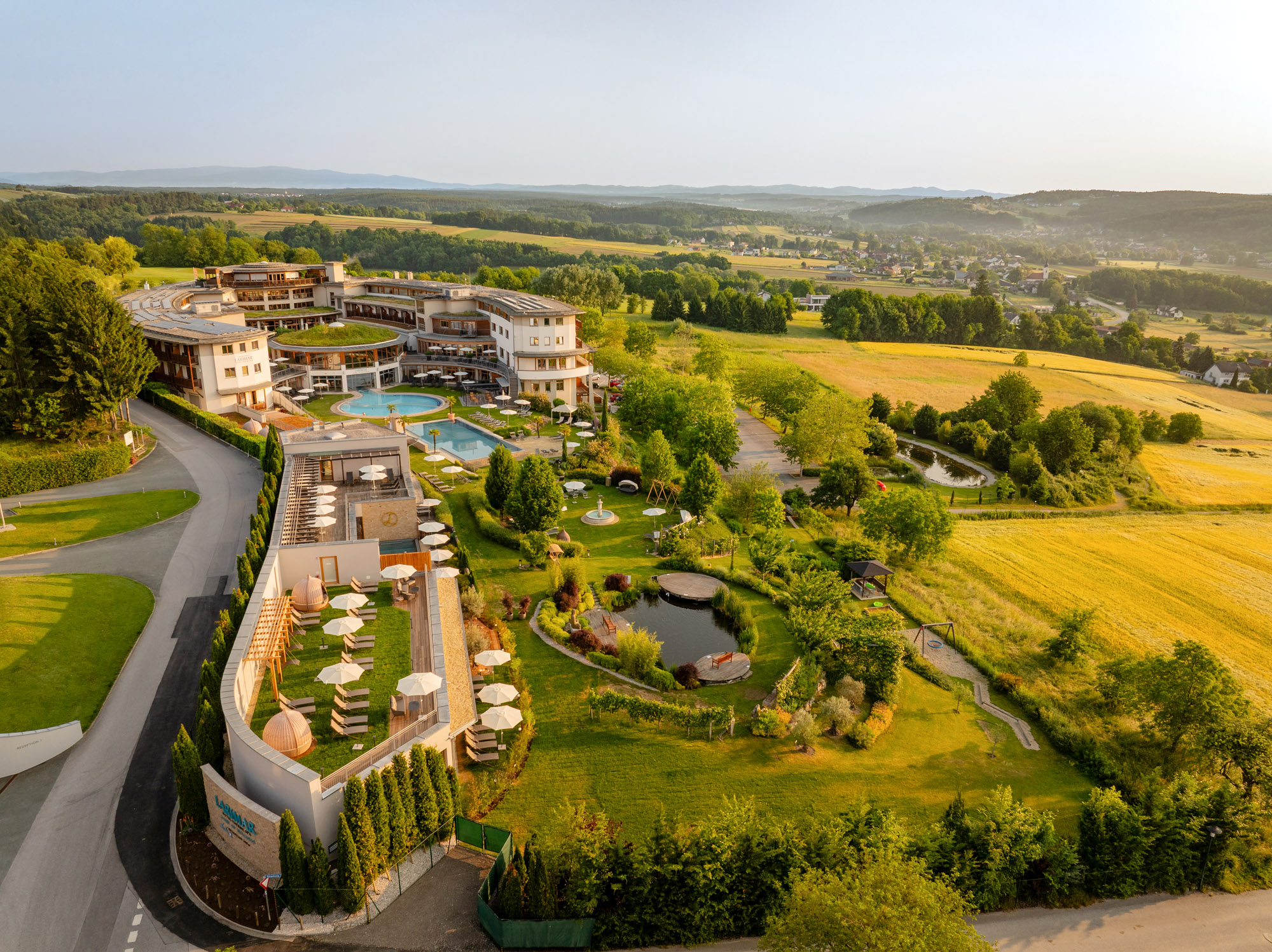 Die hoteleigene, rund 7.000 m2 große Thermen-, Wasser- und Saunawelt beeindruckt mit 9 Pools, 9 Saunen und einem neuen Ladies Spa. Das 8.000 m2 große Gartenparadies bietet Karibikfeeling mit Sandstrand, Palmen, Zypressen und Olivenbäumen. Zwei Meerwasser-Detoxpools, ein Infinity-Sportpool und zahlreiche weitere Thermal- und Süßwasserpools laden zu perfektem Wellnessgenuss im Sommer ein. Außergewöhnliche Wellnesserlebnisse sind die Schaumdampfbad-Zeremonien. Kulinarisch verwöhnt die biozertifizierte Larimar Gourmet-Vitalküche mit exquisiten Genüssen.