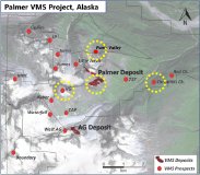 Das Projekt Palmer beherbergt Kupfer-, Zink-, Gold-, Silber- und Barytmineralisierungen, die alle als strategisch und kritisch für die inländischen Lieferketten der USA anerkannt sind, einschließlich Technologien für die Energiewende, Infrastruktur und Verteidigungsanwendungen.
