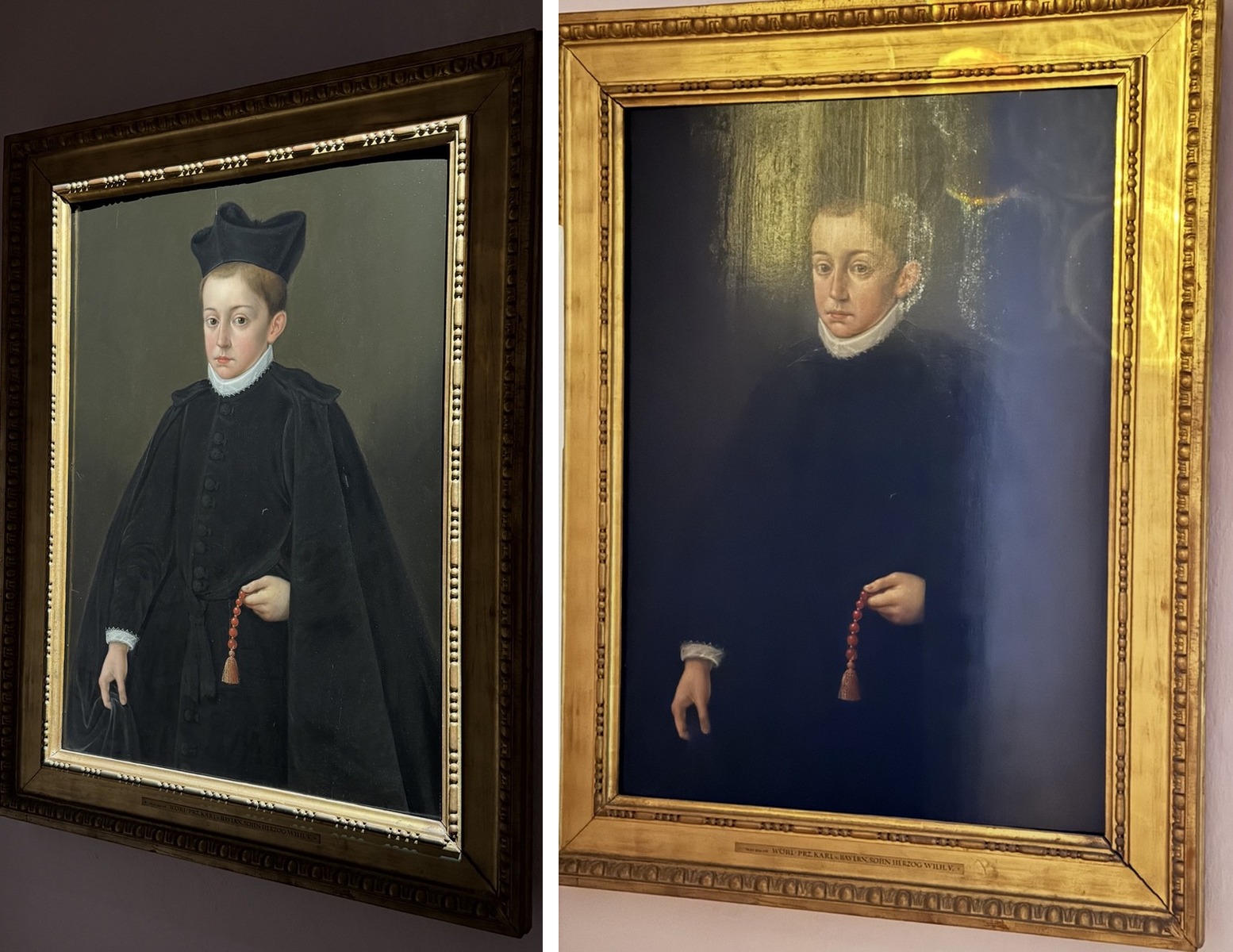 Die Wirkung ist eindrucksvoll: Während herkömmliche Beleuchtung einen „Grauschleier“ über dunkle Bildbereiche legt, reduziert der Konturenstrahler gezielt veiling glare (Schleierreflex) und minimiert zugleich Streulicht außerhalb des Motivs. Dadurch erscheinen Schattenpartien nicht länger angehoben oder „milchig“, sondern tonal stabil und detailreich. Feine Strukturen, Faltenwurf und Materialität werden lesbar – die Plastizität des Motivs steigt enorm, ohne dass am Kunstwerk etwas verändert wird.