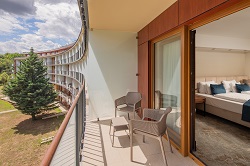 Zweibettzimmer mit Balkon (Fagus Hotel Conference & Spa) … dann lohnt sich ein Trip in das Fagus Hotel in Sopron. Denn hier dreht sich alles um wohltuende, vitalisierende Wellness für Körper und Seele, um Beauty und Gesundheit. Es geht hinaus in die Natur. Walken an der frischen Luft, eine Yoga-Session unter freiem Himmel. Und das alles nur 60 Kilometer von Wien entfernt. Die SPA-Welt in dem ausgezeichneten Wellnesshotel ist komplett neu. Die Wasser-Area spielt alle Stücke: Im wohlig warmen Pool (6×12 Meter), im Erlebnisbecken für die ganze Familie oder im lustigen Kinderbecken abtauchen. Groß und Klein kuscheln sich am liebsten in die gemütlichen Hängematten und lassen die Seele baumeln. Die Saunawelt ist ein Highlight. Wer das gesunde Schwitzen liebt, der wandelt zwischen finnischer Sauna und Aromasauna, zwischen erfrischenden Eisbrunnen und entspannenden Wärmebänken, in die Teufelssauna, Infrarotsauna und Dampfkabine. Die Saunaaufgüsse sind ein Erlebnis. Das Massage-Angebot ist vielfältig, man kann es sich gutgehen lassen im Fagus. Einfach loslassen und Verwöhnmomente genießen: In dem neugestalteten Restaurant Evergreen schmecken kulinarische Feinheiten. Weinliebhaber denken bei Sopron sofort an den großartigen Blaufränkischen, der hier gedeiht. Im Weinkeller des Fagus lagern hervorragende Tropfen aus der bekannten Weinregion. Besonders schön ist es im Fagus, wenn rundum die Natur grünt und blüht. Das Wellnesshotel schmiegt sich in ruhiger Lage in das Löwerviertel am Rande des Naturschutzgebietes von Sopron. Die „Forest“ Zimmer und Suiten bieten einen imposanten Ausblick auf den Wald. Von Luxussuiten im Rooftop bis zu Familiensuiten für Groß und Klein findet jeder Wohnwelten, in denen er sich rundum wohlfühlt. Wer seinen Wellness-Aufenthalt mit gesunder Bewegung toppen möchte, der macht sich auf den Weg hinaus. Das Stadtzentrum ist vom Fagus Hotel zu Fuß erreichbar. Die kleine, feine Altstadt erkunden oder in der Natur Kraft tanken, es gibt viele Freizeitmöglichkeiten. Fahrräder, E-Scooter und Nordic-Walking-Tourguides können im Hotel ausgeliehen werden. Das Sport-und -Fitnessprogramm des Fagus Hotel ist kostenlos.